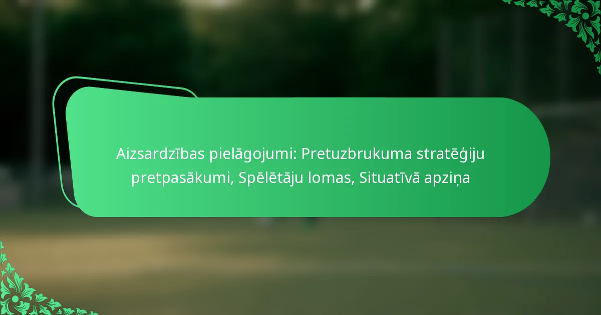 Aizsardzības pielāgojumi sportā ir būtiskas taktiskas izmaiņas, ko komandas ievieš, lai pretotos pretinieku uzbrukuma stratēģijām. Atpazīstot un reaģējot uz šīm taktikām, komandas var saglabāt konkurētspēju un ietekmēt spēles iznākumu. Efektīva komunikācija, spēlētāju lomas un situatīvā apziņa ir vitāli svarīgi komponenti, lai veiksmīgi īstenotu šos pielāgojumus.