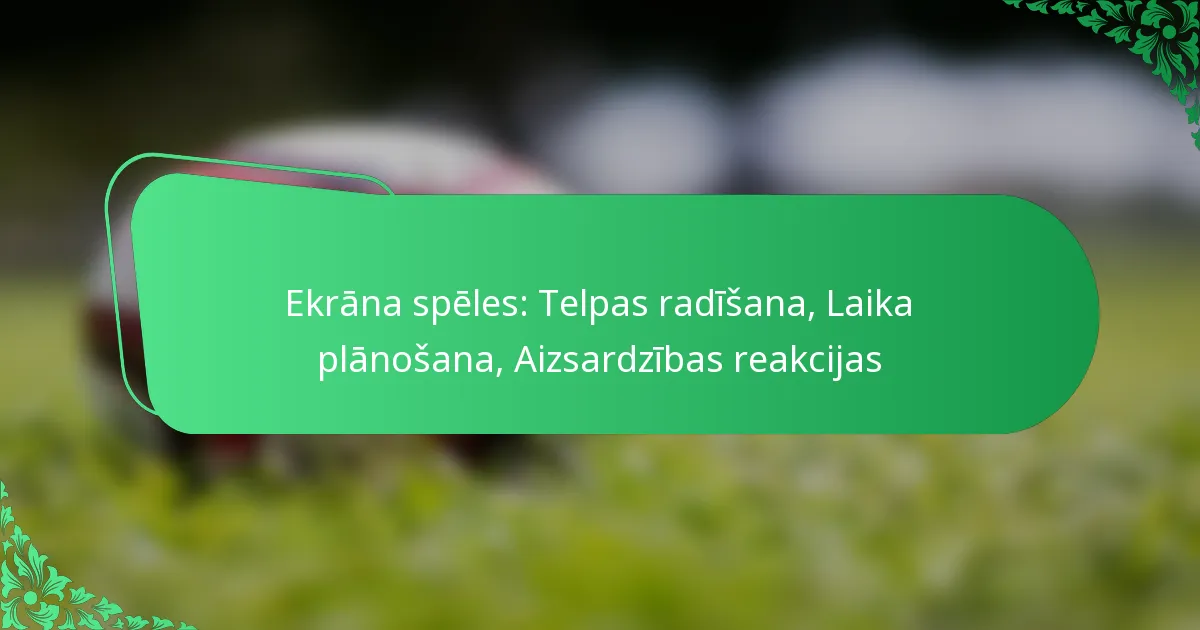 Telpas radīšana ekrāna spēlēs ietver stratēģiskas pozicionēšanas un laika izmantošanu, lai ļautu uzbrukuma spēlētājiem iegūt atdalīšanos no aizsargiem. Efektīvi ekrāni var izjaukt aizsardzības segumu, ļaujot komandas biedriem saņemt bumbu vai veikt spēli. Izpratne par ekrāna tehniku, spēlētāju pozicionēšanu un laiku ir būtiska, lai maksimāli palielinātu uzbrukuma iespējas.