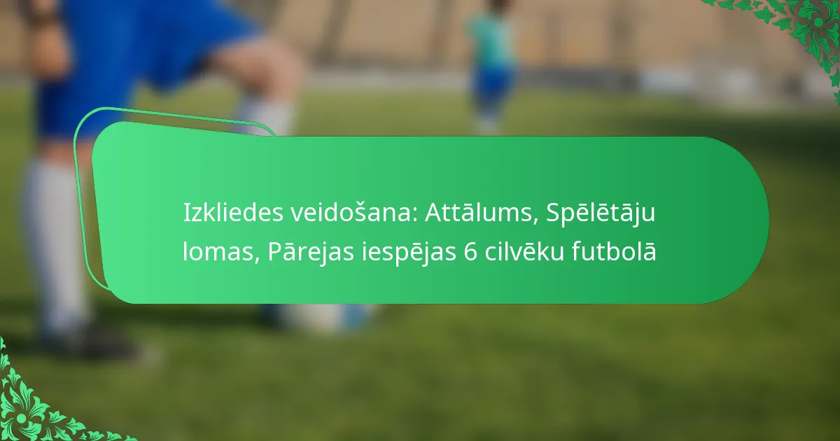 Izkliedes formācija 6 cilvēku futbolā ir uzbrukuma stratēģija, kas koncentrējas uz telpas radīšanu un spēlētāju lomu maksimizēšanu, lai uzlabotu piespēļu iespējas. Uzsverot pareizu attālumu, komandas var izmantot aizsardzības vājās vietas un radīt nesakritības, ļaujot veikt efektīvākas un dinamiskākas uzbrukuma spēles. Katras spēlētāja atbildības ir būtiskas, lai aizsargu spēlētājs varētu pieņemt ātrus un stratēģiskus lēmumus spēles laikā.