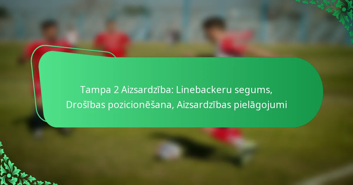 Tampa 2 aizsardzība ir stratēģiska zonu segšanas shēma, kas izceļas ar aizsardzību pret piespēlēm, vienlaikus nodrošinot spēcīgu atbalstu skrējienam. Centrā šajā sistēmā ir divi dziļie drošības spēlētāji un vidējais aizsargs, kurš sedz vidējās zonas, ļaujot efektīvi pielāgoties dažādām uzbrukuma taktikai. Aizsargi koncentrējas uz konkrētām zonām, nevis individuāliem spēlētājiem, kas prasa spēcīgu komunikāciju, lai novērstu saņēmēju maršrutus, kamēr optimāla drošības pozicionēšana uzlabo segšanu pret īsām un dziļām draudiem.