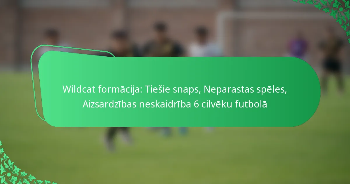 Wildcat formācija 6 cilvēku futbolā ir uzbrukuma stratēģija, kas izmanto tiešos snapus skrējējam vai citam prasmīgam spēlētājam, nevis tradicionālajam aizsargam. Šis neparastais pieejas mērķis ir radīt neskaidrību aizsargiem un izmantot nesakritības laukumā.